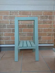 チェア型グリーンスタンド 2回目の作品。屋外で使うつもりでしたが、デザインが可愛くてフラワースタンドにしました!