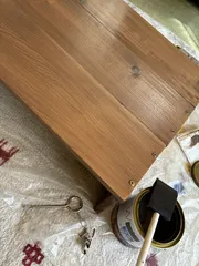 ミニベンチ 2台目作ってみました。座るとこに、穴開けてしまいましたが,楊枝でどうにか塞げました。