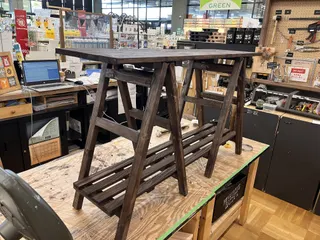 上級者限定ワークデスク 久しぶりのワークショップに参加しました。前から作りたかった上級者限定のワークデスク。工程も多く、塗装も大変でしたが上手にできました。ダボ打ち後のカットで手を負傷したのは、まだまだ下手くそってことかな。