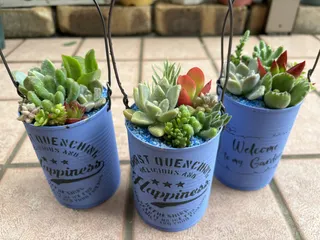 久しぶりのリメ缶寄せ🌱 このリメ缶を作るのが大変だったので… 正しくはステンシルが中々うまくいかず 失敗したのはもう1度塗装し直そうと とってあります😅 この3点はその中でも上手にできた方で 勿体なくて飾っていました😅 しばらく飾って置いたら、 今度は使ってあ