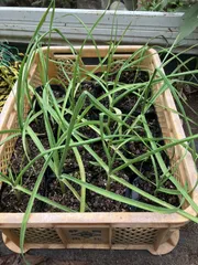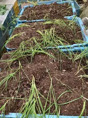コンテナでニラ栽培 ■育てた野菜ニラ ■エピソード(種から育苗し植え替えました。)