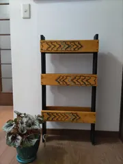 ラダープランター🌿 冬になったら寒さ対策に多肉を集めて寄せ植えする目的で作りました。今回初の試みで、形の良さそうな葉をマジックでかたどり、カッターでカットし、その周りをステンシルしてみました。はじめの1枚目は形全体の周りをぼかし加減にステンシルします。2枚目からはずらしながらステンシルしていきます。何しろ初めてなので上