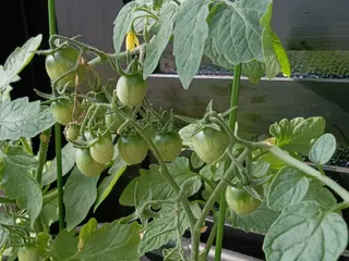 鈴なりになってます。実が小さいのはわき芽をちゃんと取ってないからです。わかってるのに中々とれない!難しいです。愛おしいくてわき芽とるのを尻込みしてました。来年なら取れるかな?!今は実がなるだけで嬉しいです😁