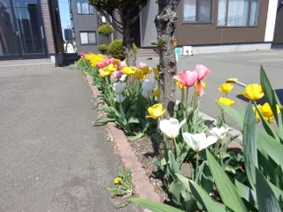 北海道もチューリップ満開でーす(^^)/ こちらは札幌でーす。桜に次いでチューリップも満開の時期を迎えていますよー。我が家の駐車スペース横のボーダーガーデンも賑わってますよー(^^)/我が家に向かって右側でーす(^^) なんか黄色が増えてきたなぁ~。こちらは中央付近。あっ!ワンちゃんのお尻が剥げているぅ~(笑)こちらが左側。見てるだけで幸せ