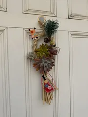 去年に引き続き伸びた多肉を使ってしめ縄を作りました!今までは真ん中にみかんが付いたオーソドックスな、しめ縄を飾っていたのですが去年から家にある多肉で作り始めました。