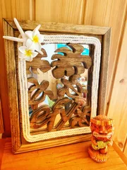 ALOHA 昨日投稿した さいたま市のCafe。efyにサプライズで贈り物を🎁✨バイク屋さんの2Fで営業してます。材料はコチラ100均この鏡の大きさに木材をカット。お店の看板このefyのフォントを使いたかったので、コピーして、木材にうつしてるよ。さて糸のこノコノコ✨切り抜く所に