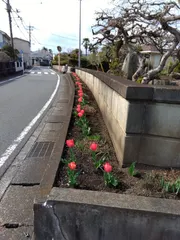 今年もチューリップが咲きました。🤗 1箇所にこんなに‼️これは、植替えなしでした。😆😆ラベンダーと共に🤗🤗通路側水仙と共に✨✨