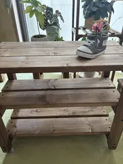 私は時期を変えて2台作成しました。 1台目は初めてのカインズWS。電動工具も使ったことがないのに初めて作った作品です😅 こちらはそのまま玄関に小物収納として活躍しています。 2台目は多肉を入れようと作成しました。ぱんださんも言っている通り多肉を入れると深すぎてリメ鉢などは見えないし、沢山置けないし。