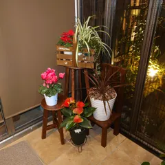 ミニカウンターチェア(左下の今日作ってきました) カインズwsで作った作品今日は左下のミニカウンターチェアが仲間入り!かわいく観葉植物コーナーができました🤗今回はチェア2回目なのでとてもスムーズにできました!前回はくぎは出てるわ💦打ち直してダボで埋めるわ、ガタつきまくるわで 一苦労でした💦だんだん上手になってきてるのかな〜 ★はまたこ