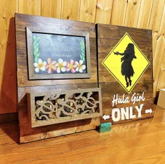 ALOHA ワークショップの予約をしていたのに濃厚接触者になり、予約をキャンセルした看板… 諦めきれず、自分でDIY両面にして楽しむことに。チョクアートを購入して枠を作り、下にはソーラーライトをいれて完成!