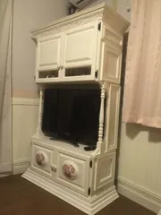 テレビボード ■作品内容 テレビを置く部屋に合ったオシャレな収納付きのボードを作りました。 ■こだわりポイントカントリーな家を建てたので、カントリー感を損なわないように作りました。扉は、レールアンドスタイルビットでカマチ組みを施しています。