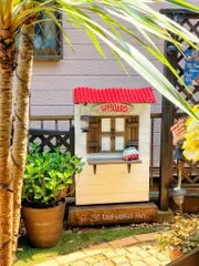 ALOHA 初めてDIYした小屋風がこちらです 屋根には本物のトタン板を打ち付けて… 初めは青だったので赤に塗装してカットするのが本当に大変でした。 直に置くのが嫌いなので、ピンコロがイイ仕事してくれてます。サーフボードの看板は真似してDIY今ではこんなに派手