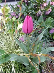 チューリップ アイキャッチ画像は一昨年寄せ植えしてそのままの鉢から見事に一輪咲きました!葉ボタンとビオラの寄せ植えに仕込んだチューリップカモミールは勝手に入り込みました!後は、去年の冬前にブロンズの金魚草ビオラと寄せ植えにしたチューリップ、いつの間にか咲いてた😱😱玄関の前なのに気づかず😆😆