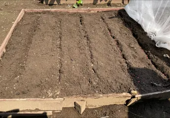 ほうれん草の種蒔きの追加 3月3日投稿の「ほうれん草の種蒔き」(リンク→ https://diy-square.cainz.com/announcements/uv8r00fths4pph7q )は芽が出て少しずつ成長してますが、種も余ってるし、スペースが少し空いてるので、時間差収穫を狙って。15㌢間隔で5列のスジを引いて、