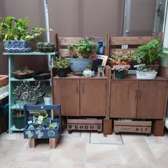 ベランダ収納庫を2つも作られるなんて凄すぎます‼️嵩上げした下にベジタブルBoxを収納されて素敵です😍
