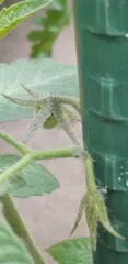 アイススノー(白トマト)その後 4月18日に苗買いましたの投稿をしたミニトマト「アイススノー(白いミニトマト)」小さな実が付きました!ゴールデンウィークを越し、花芽が付いた5月18日にやっと大きなプランターに植え替え5/18、第一花が咲きました💗そして1週間、落花することなく小さな実が成長しつつあります!恥ずかしがってか、あっち向