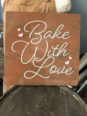 B&B ボード 焼きたてのケーキをイメージして全体的に茶系にしました。 文字は写真だと分かりにくいですが薄いブルーにピンクのハート💕