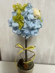 紫陽花のトピアリー ブリザーブドフラワーでのトピアリー🍀材料が高騰? 手に入らないとの事で家🏠にトピアリー幾つかあるにも関わらず💦参加させて頂きました🎶ひたすらワイヤリングをして指が疲れた😓皆さん、オンリーワンの出来映えです💕ご覧頂き感謝します💕材料たち
