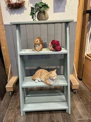 足場風3段ラック 3個目😅 先日、足場風3段ラックの3個目を作ってきました😅多肉棚にしたくて撥水のグリーンで塗装しました🎨昨日おっとっとが仕事から帰ってきてからブロック塀にケルヒャーをかけてもらい少し綺麗になったので設置しました😍ほぼセダム育成棚になってしまいました😅