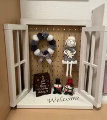 窓型ウォールラック 初めは勢いで行っていたワークショップも「これは作っても置くところないな…」とか「作っても置くものがないな…」とか考えるようになってきました(笑)でも窓型ウォールラックは絶対欲しくて、場所をあけ、飾るものを考えながら待ってました♪ 以前作った2段ディスプレイラックの隣に置きたくて、自前塗料で