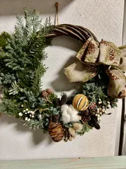 クリスマスリース *クリスマスリース*木の実🌰やリボン🎀を使ったドライフラワーのナチュラルリース✨✨ 片道2時間のプチ旅行🚗✨とても素敵なクリスマスリース🎄ラッピングも可愛い❤️