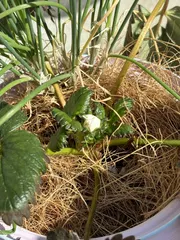 去年11月初旬のGWSで 植えた可愛い苺🍓 寒さ対策まで教えていただき リメ缶に植えたイチゴ苗の 保護になるようなカバーまで用意 していただいてました。 そのおかげで最近の寒さにも負けず お花が咲きそうです♪(๑ᴖ◡ᴖ๑)♪ 楽しみです
