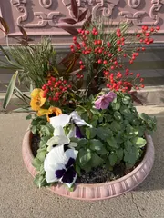 お庭の南天で より華やかに彩られて、とても素敵なお正月の寄せ植えですね✨