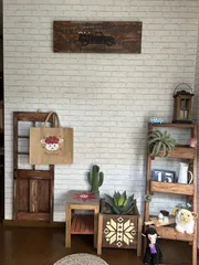 まろん家の玄関B&B🩷 玄関に私の作ったB&B作品を飾りました🩷ボード スツール ボックス ジュートバックと 他WSの作品と合わせて玄関が私の好きな物でいっぱいになりました😄🎶