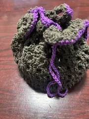 巾着2号 もう少し 慌てん坊じゃなくて😅抜けてます💦白糸で初めに編んでしまって😱解いてからの今現在。そのままと思ったのですが😓あと少し飾りの花を数個と葉っぱを数枚作らないとです😆連休中に編めればと思ってます💪