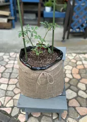 私のアイデアではありませんし、既にご存知の方も多いとは思いますが、土の入った袋をそのままプランターとして使うという、とっても便利な「トマトの土」を使って、ミニトマトの栽培を始めてみました🍅麻布をめくるとこんな感じ我が家には小さな家庭菜園があるのですが、既にナス・キュウリ・ジャガイモ達に場所を取られ、