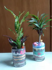 カラーサンドの観葉植物 初カラーサンド、難しくもあり、楽しくもあり、 グリーンの工房のお姉様方、ご一緒させていただいた常連のお姉様、 楽しい ヒトトキ をありがとうございました❤❤