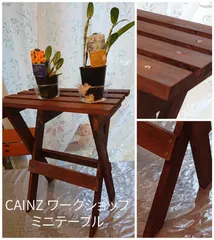 ミニテーブル🔧はじめてのカインズワークショップ 🔨はじめてのワークショップで作成しました。オープニングイベント。杉?かな。ペンキは超撥水のブラウンです。強度が強いものではないのですが家でのちょい置きに。子供が手芸をするのでテーブルとして使用しています。 カインズでは小さめの電動ドライバーを使用するのですが、軽くてとても使いやすいです。(