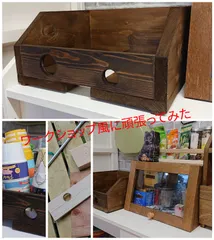 ホールソー穴付 箱作り🍵ワークショップを駆使 先日作った カフェ風ショーケースとスパイスケースの横にコップ置き場があるのですが、他の2つに合わせた箱をつくりました。 私は普段小物は作らないのですが大量に木材の端材を購入し検討してみました。↓CAINZではないいお店で10円からの端材です。 今 流行りのスタッキングボックスを作