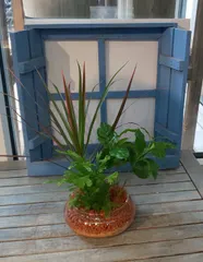 ミニ観葉の寄植え おはようございます🌄WS当日の投稿途中で2回も消えて悲しみにくれ、今朝はリベンジ投稿の ぷりぶりです☺️火曜日に、高速ブンブンと鶴ヶ島店のグリーンWSに参加してまいりました🚙🎵ちゃーんと、早起き?して、遅刻しないで到着できましたよ〰🤭💦年々夏は、お花には厳しい環境になっていますね。そんな夏には!!室