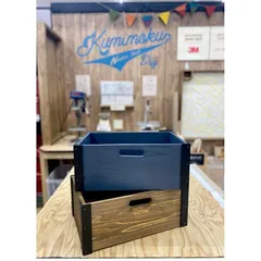 アイアン風収納ボックス 予告の段階で一目惚れしたアイアン風収納ボックスです❤️夫と参加して色違いで作りました🔨 この時はじめてホールソーとジグソーを使いました🤩スタッフさんが丁寧に教えてくださったので上手くできました🎶 角の黒がアクセントになっていてとても気に入っています☺️