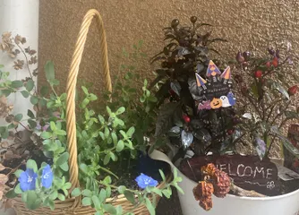 モルタル小屋もハロウィン🎃 可愛い二段重ねのかぼちゃ🎃買ったので、モルタル小屋回りをハロウィングッズで飾ってみました😆mahalo♡