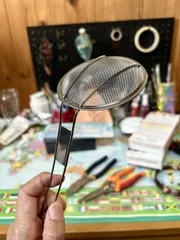 100均のアク取りでハロウィンの飾りを作るぞ ※Kさん、メンションさせて頂こうと思ったんですけどどうしても"K″1文字で出てくれませんでした💦ごめんなさいm(._.)mさて、取り出したるこちらのアク取り、どこの100均でも売っている、何の変哲も無いアク取りでございます。 これをこうして… こうするじゃろ? で、こん