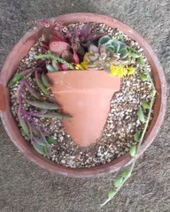 GWSに行きたい…日程的に無理となれば自力で💪右、100均のセットの鉢がヒビ割れで未使用、埋め込めばうまく使えそう✌ 家の放置鉢にぴったり🤭ヒビ割れ部分は下へ赤玉土あれれ?鹿沼土で良いか多肉の土そこら辺の多肉をちぎって、そのままぶっ挿して終わり これで成長したらスゴい😍😍