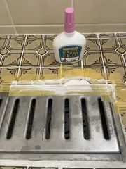 お風呂場の洗い場の排水口のとこのタイル剥がれをタイル目地材で埋めました。