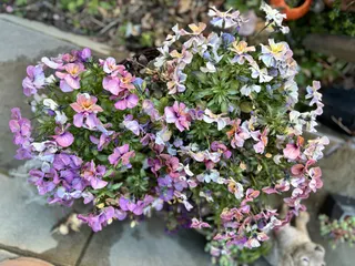 ギャザリン寄せ植えしたお花たち💛葉牡丹はちょっと伸びてきましたが😅ビオラやロータスプリズムストーンはいい感じ🤭💕寄せ植えした時はこんな感じ🤭 この時は葉牡丹がメインだったけど、今は他のお花がモリモリに🤗長く楽しめる寄せ植えでした💛我が家の庭は花ざかり💗💗💗
