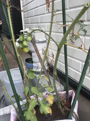 上の苗の摘芯の結果ボケてますが、【実が鈴なり】になりました。 こちらも摘芯した結果最近はどちらが先に食するか?【人間か虫か】毎日戦っております。
