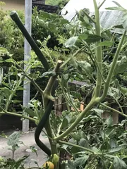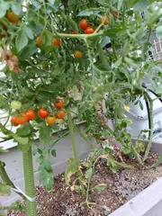今日のミニトマト128日(畑に植えて80日)摘芯してみました 上の苗の摘芯の結果ボケてますが、【実が鈴なり】になりました。 こちらも摘芯した結果最近はどちらが先に食するか?【人間か虫か】毎日戦っております。