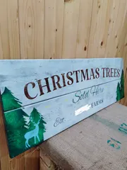 サインボードロングA クリスマスツリー販売中 8作品目(B&B全体で言うと10作品目)のサインボード ロングA クリスマスツリー販売中 を作ってきました🙂 大きくてダメージ加工、バックの色塗りが思ったより大変😅初めて下地のステインをブラックにしました。設置場所がベンチの上と決めていたのでベンチの色のウォルナット色に同化しないようにしま