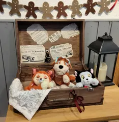 今日のWSアンティーク風トランクBOX💼 ルイ・ヴィトンのトランクBOXのイメージでペイントしてみました✌️プードルの🎅置き物と羊毛フェルトの🎄ツリーのディスプレイ♥️DISNEYのお気に入りぬいぐるみ持参お出かけに入れて連れて行こうかな🩷 ルイ・ヴィトントランクこのお値段では手が出ませんよね手作りトランクBOXはお手軽でお気に入