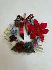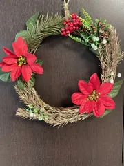 クリスマスリース〜ダイソーの材料で🎄 ダイソーの材料を使って、グルーガンで、花たちをくっつけてみました✌️ 冷たい風が吹いていたので、室内で、ちょこっと頑張りました✌️