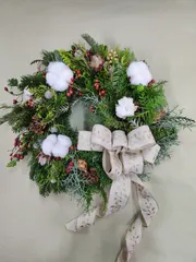クリスマスリース クリスマスリース作ってきました💕もみの木、ヒノキ、キーフオレスト、和綿、ヒバ、シダローズ、薔薇の実などを使いました🎶ヒノキの香りに、しばらく癒されます☺️✨