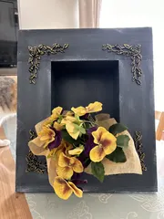 フラワーフレーム💐 フラワーフレーム🖼️にスパイスラックと同じようなアレンジをしました❣️タッカーの針は隠せなかったのですがなかなか良い感じにできたかなと思ってます😁