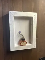 フラワーフレーム フラワーフレーム3個目です🤎1個目2個目は同じ日の午前と午後にWSに参加してウォルナットと超撥水ホワイトでスタンドと組み合うように作ったのですが3個目はフレームに直に多肉を植えて木鉢として使いたいと思い背面に穴を開けて超撥水ブラウンで仕上げました🤎セダムを植えてモコモコにする予定です☘️