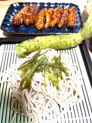お蕎麦と名古屋風手羽先 外食に行ったみたいな美味しそうな組み合わせですね💕︎ 自分も 山葵好きなんです 先日 長野に行って買ってきましたよ🤭 サメ皮のおろしと砂糖を付けながら 葉の方からクルクルおろすと 辛味と風味豊かな香りがしますね💕︎ 山葵もあるので 今週末 蕎麦打ちをする予定なんです🥰