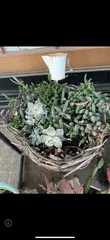 壊れかかった籠に 長く伸びた枝をさし芽に額伸びすぎて切ったものを置いてみたら育ってくれました